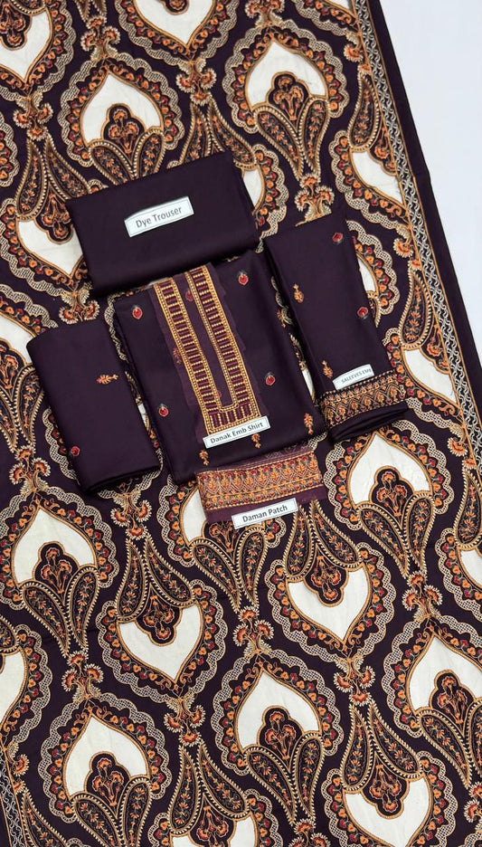 EMBROIDERED 3PC DHANAK SUIT WITH EMBROIDERED SHAWL