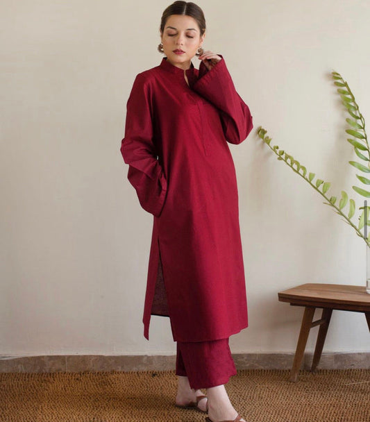 Qaswa Dhanak Embroidered Three piece 1747 MEHROON